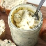 Melt a stick of butter and evenly distribute the butter over cake mix