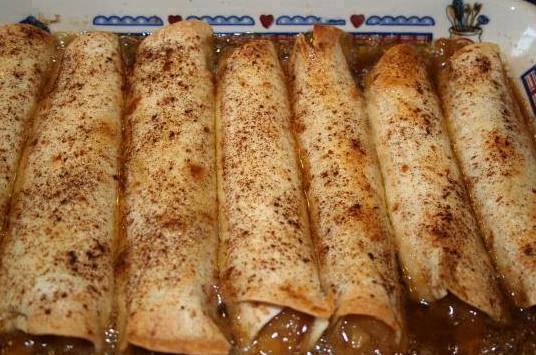 Roll up, and place, seam side down, in a lightly greased baking dish.