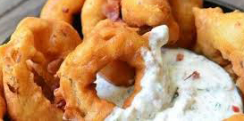 For the dipping sauce: whisk all ingredients together in a small bowl, until all incorporated. Make sure to use the same method for mincing bacon as you did for onion rings.