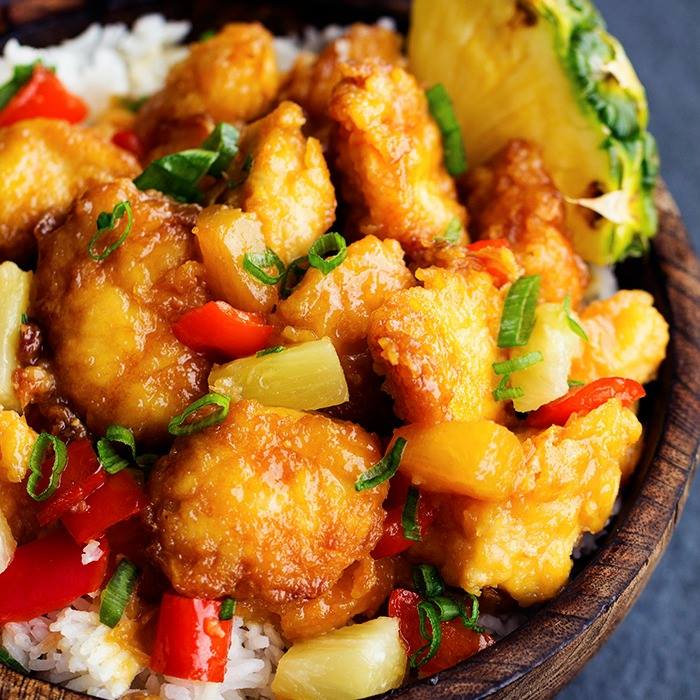 In separate bowls, place cornstarch and slightly beaten eggs. Dip chicken into cornstarch then coats in the egg mixture. (yes you dip the chicken first in the cornstarch. I promise this method is amazing.)