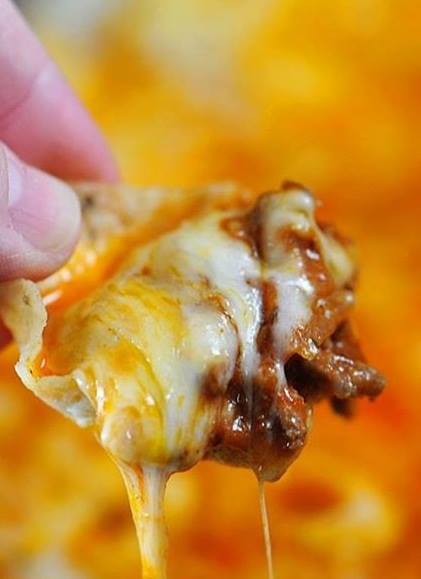 Brown ground beef in a large skillet. Drain. Add in onion and garlic and cook until tender, about 3 minutes. Stir in enchilada sauce and top with grated cheese. Cover and allow cheese to melt, about 3 more minutes.