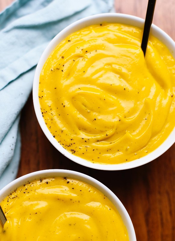 In a medium pot, warm up the stock and add the squash and browned onions. Bring to a boil, then add the spices, salt and bay leaves. Reduce and simmer for 15 minutes until all flavors combine. Do taste tests frequently and adjust the spices to your liking. When done simmering, remove the bay leaves and finely puree the soup with an immersion blender.