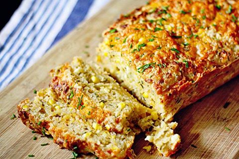 In a large bowl, combine flour, sugar, baking powder, and salt together. Add 1 cup of cheese, corn, and chives. Stir to combine.