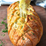 Remove top third of the loaf by cutting around the bread several times with a sharp knife. Keep the knife at an angle that goes slightly downward. Remove the insides creating a boat. Try to leave about a half-inch of bread all the way around.