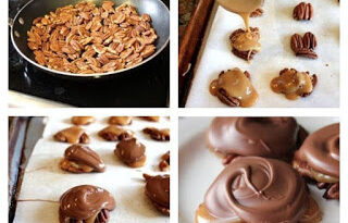 Bake in preheated oven for 5 minutes or until mixture is bubbly. Sprinkle chocolate chips evenly ove top. Let sit a couple of minutes, then using an offset spatula and spread chocolate to cover. Sprinkle top with pecans. Let cool then refrigerate until completely cold, at least 4-6 hours. Peel away the foil and cut or break into pieces.
