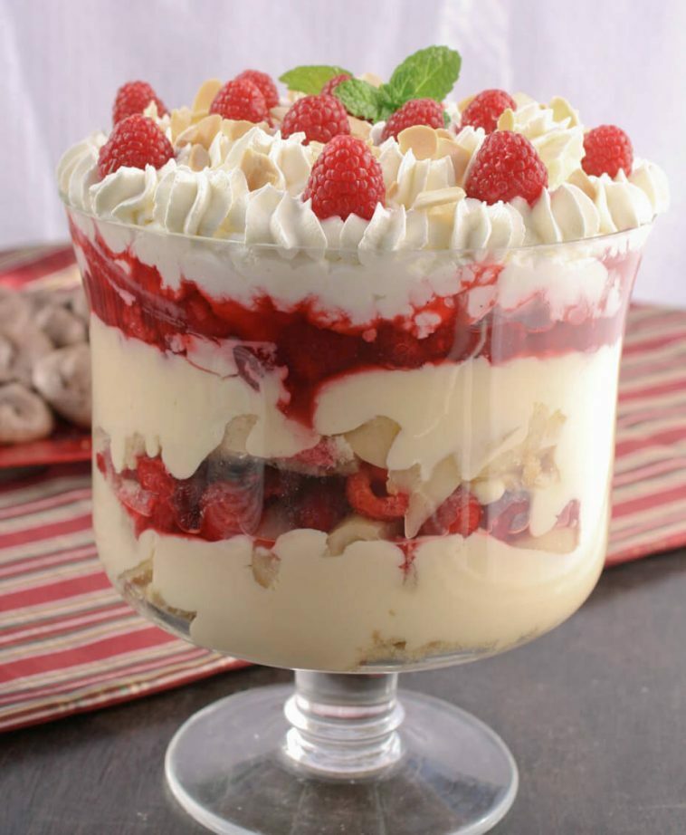 6 In the following order, layer the ingredients in a trifle bowl or similar clear bowls, such as a salad bowl or punch bowl:
