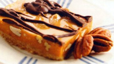 5Bake 35 to 40 minutes or until cookie is golden brown. Cool 1 hour. Refrigerate at least 3 hours before cutting and serving. Cut into 6 rows by 5 rows. Store covered in refrigerator.