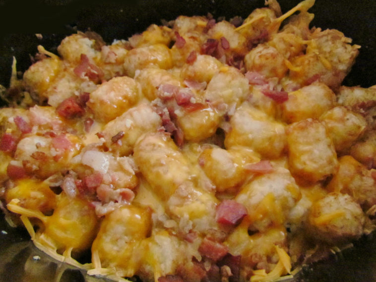 Layer half of the frozen tater tots on the bottom of the slow cooker.