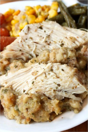 I finally perfected my Crockpot Chicken and Stuffing Recipe! I say this because there’s a special technique you must do in order to stop the stuffing from drying out. I don’t like dry stuffing. I like light, fluffy and moist stuffing. This recipe is easy but there’s an order to the ingredients to make it come out just right. This recipe has amazing flavor added to it also. Finally, finally, FINALLY!