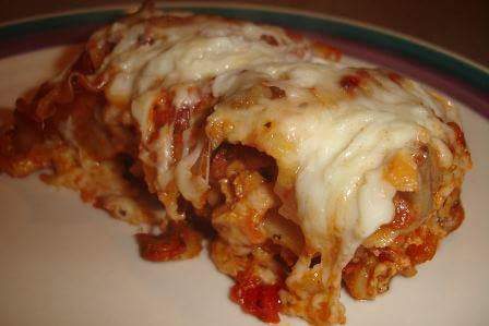 Brown meat and onion. Drain grease and add sauces. Cook noodles then layer noodles, meat mixture, cheeses, and pepperoni. Repeat layers. Cook on high for 30 minutes then reduce heat and cook for 1 hour until cheese is melted.