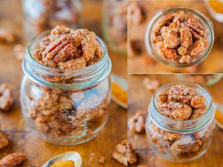 3 cups nuts (pecans work very well to absorb the coating; I used 1 cup each of pecans, walnuts, and almonds. All were raw and unsalted)