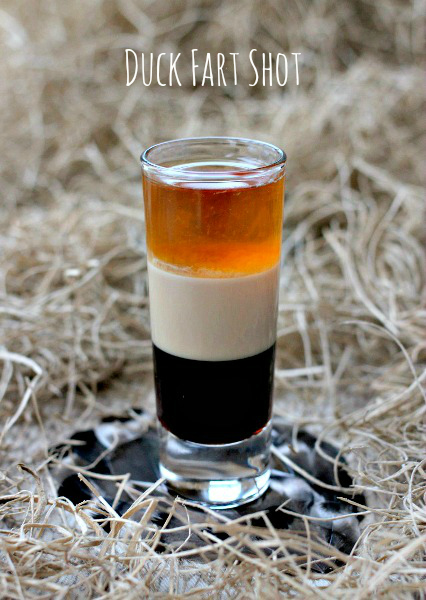 3. Add the whiskey for the top layer, carefully pouring over the back of a spoon.