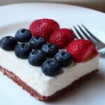 Mix the flour, icing sugar and melted butter together. Press into the bottom of the tin.