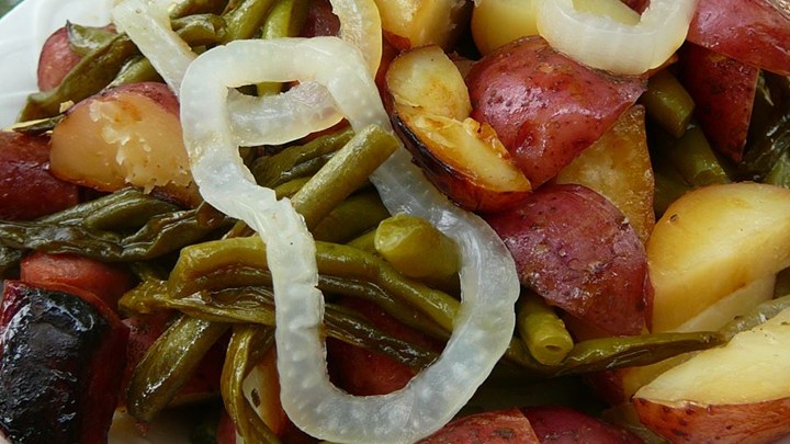 Grilled Sausage with Potatoes and Green Beans