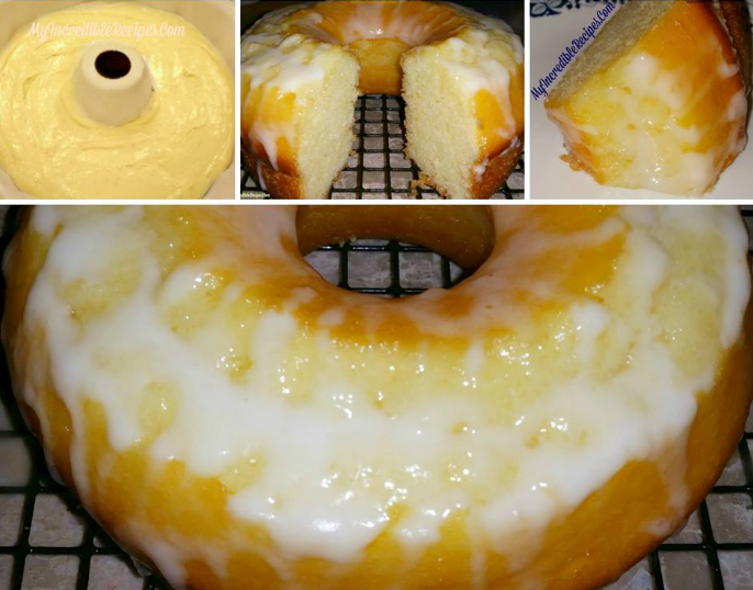 Mix powdered sugar and lemon juice and milk together and drizzle on cooled cake one removed from the pan…