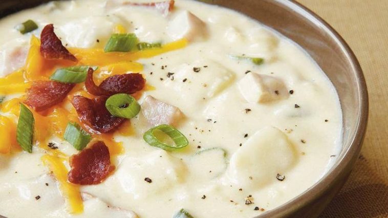 2.In 6-quart Dutch oven, mix onion, broth and potatoes. Heat to boiling; reduce heat. Cook 10 minutes or until potatoes are very tender.