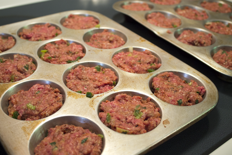 Preheat oven to 450. In a big bowl, add the beef, onion, celery, and pepper and mix to combine. Add egg, beaten with milk, bread crumbs, and grill seasoning to the bowl. Mix to combine. Next, in a small bowl, mix together the smoky barbecue sauce, the salsa, and the Worcestershire sauce. Pour about three-quarters of the sauce mixture into the bowl with the meatloaf mix. Mix the meatloaf together well. Brush a 12-muffin tin (1/2-cup each) with extra-virgin olive oil. Fill each tin with the meatloaf mixture. Top each meatloaf with a spoonful of the extra sauce. Bake about 20 minutes. Cut open one muffin to test that the middle is cooked through.