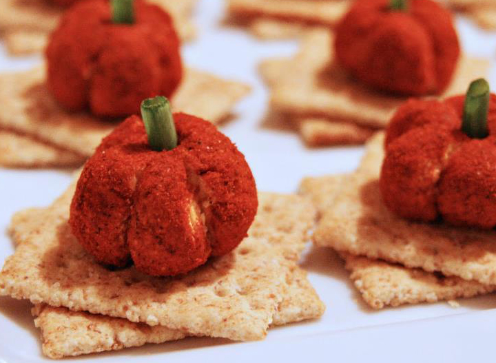 Roll into 1-inch balls and then coat in paprika. Make indents in the side of each one with a knife to make a pumpkin shape (refrigerate longer if needed before shaping with a knife).
