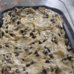 Top the rest of the cheesecake filling on top and then place drops of the cinnamon sugar swirl on top of the cheesecake.
