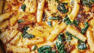 Asiago Chicken Pasta with Sun-Dried Tomatoes and Spinach
