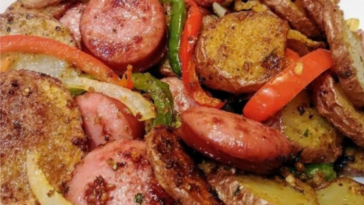 Fried Potatoes and Onions/Peppers with Smoked Sausage