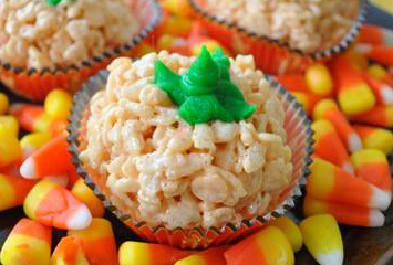 3. Using 1/2-cup measuring cup coated with cooking spray divide warm cereal mixture into portions. Using buttered hands shape each portion into a pumpkin shape.