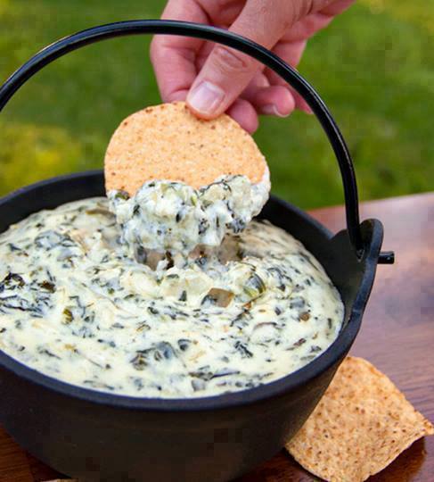 In a medium pot over medium heat, melt together 8oz cream cheese, 16 oz sour cream, 1 stick butter and 1.5-2 cups parmesan cheese, stirring frequently until melted and even consistency. It should start to bubble.