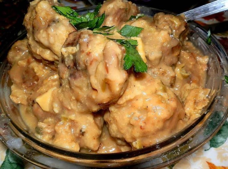 7. You can serve them as is or w/ gravy. I placed mine into my 8-quart crockpot; cover with gravy; cook on low for about 3 hours. I then turned down to warm; till time to serve…They suck up a lot of the gravy, so don’t plan on using that gravy for mashed taters.